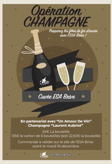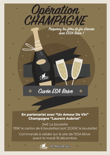 A l'approche des fêtes de fin d'année, l'ESA Brive en collaboration avec UN AMOUR DE VIN vous propose du champagne spécial ESAB !