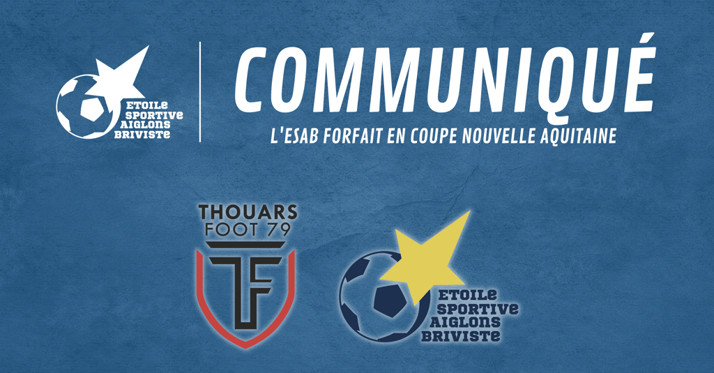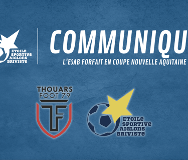 Nous vous informons du forfait de l'ESA BRIVE pour le match de coupe de Nouvelle Aquitaine ce samedi 15 avril sur le terrain de THOUARS.