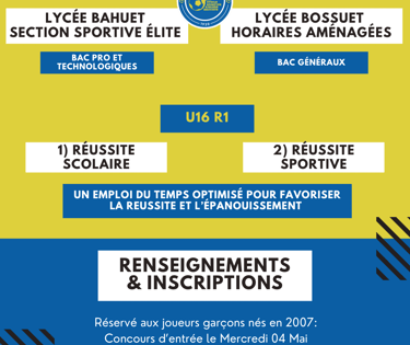 Dès la rentrée scolaire 2022, en complément de la section sportive animation au lycée bahuet, une section sportive élite va être créer à destination de la génération 2007 qui évoluera en U16 R1.