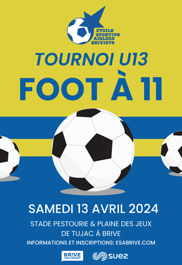 Durant cette fin de saison, l'ESA BRIVE organise 2 journées: Samedi 13 Avril: tournoi de U13 foot à 11 et comme chaque saison, la journée U7 et U9 "Pestou en Fête" qui aura lieu le samedi 25 Mai.